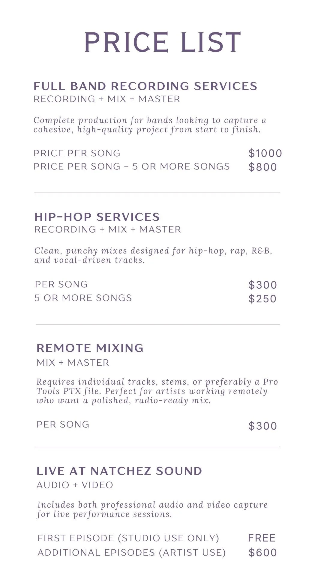 Professional music production, mixing, and mastering facility in the heart of Natchez, MS.